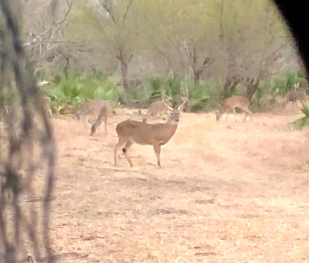 He and a couple of other deer congregated at a feeder to the side of the sendero while the others drifted in the other direction. One by one, the deer around him began to meander away…