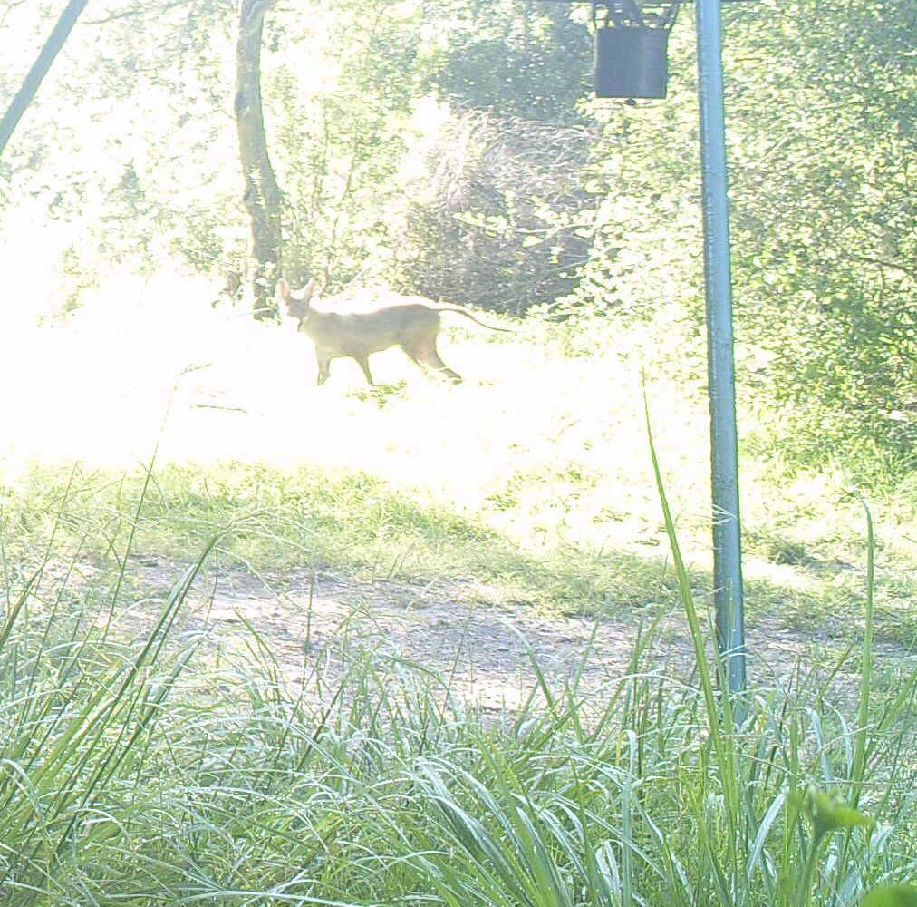Naturally, the camera didn’t capture its face, but the body is strange enough to look at with it’s almost rounded ears and the stripes on its tail underneath its sparse fur. It also looks to be moving pretty quick in the picture.
