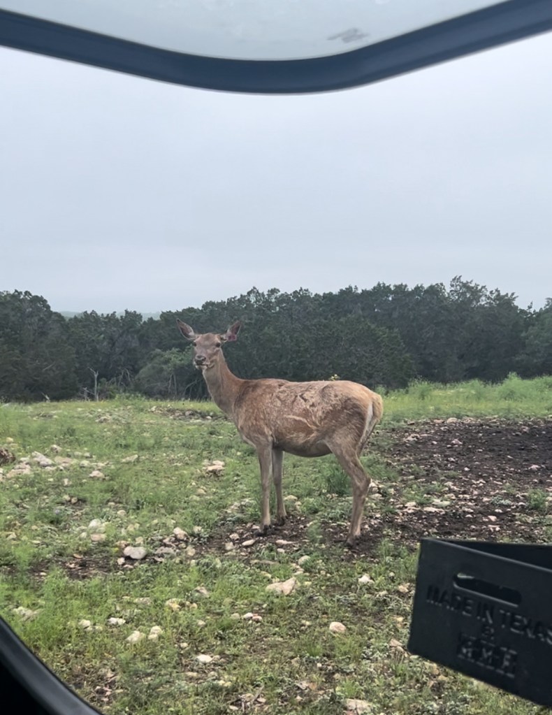 But on this particular property in the Hill Country, there were hills overlooking clearings and small groves of trees with thinner brush beneath their branches where we could carefully pick our way along deer trails and crouch in the shadows of a tree for cover while we glassed for animals. It was another new experience on top of multiple new experiences in the course of one weekend, and I was just as nervous as I was excited! In the shadow of an overcast sky heavy with rain, we made our way back to the lower pasture.